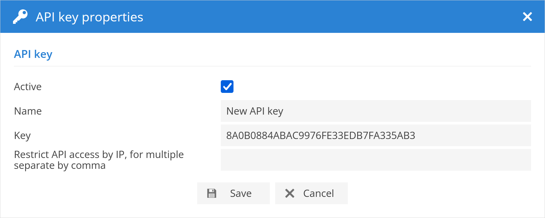 Restrict API access by IP - set the IP address to which the API key is restricted.